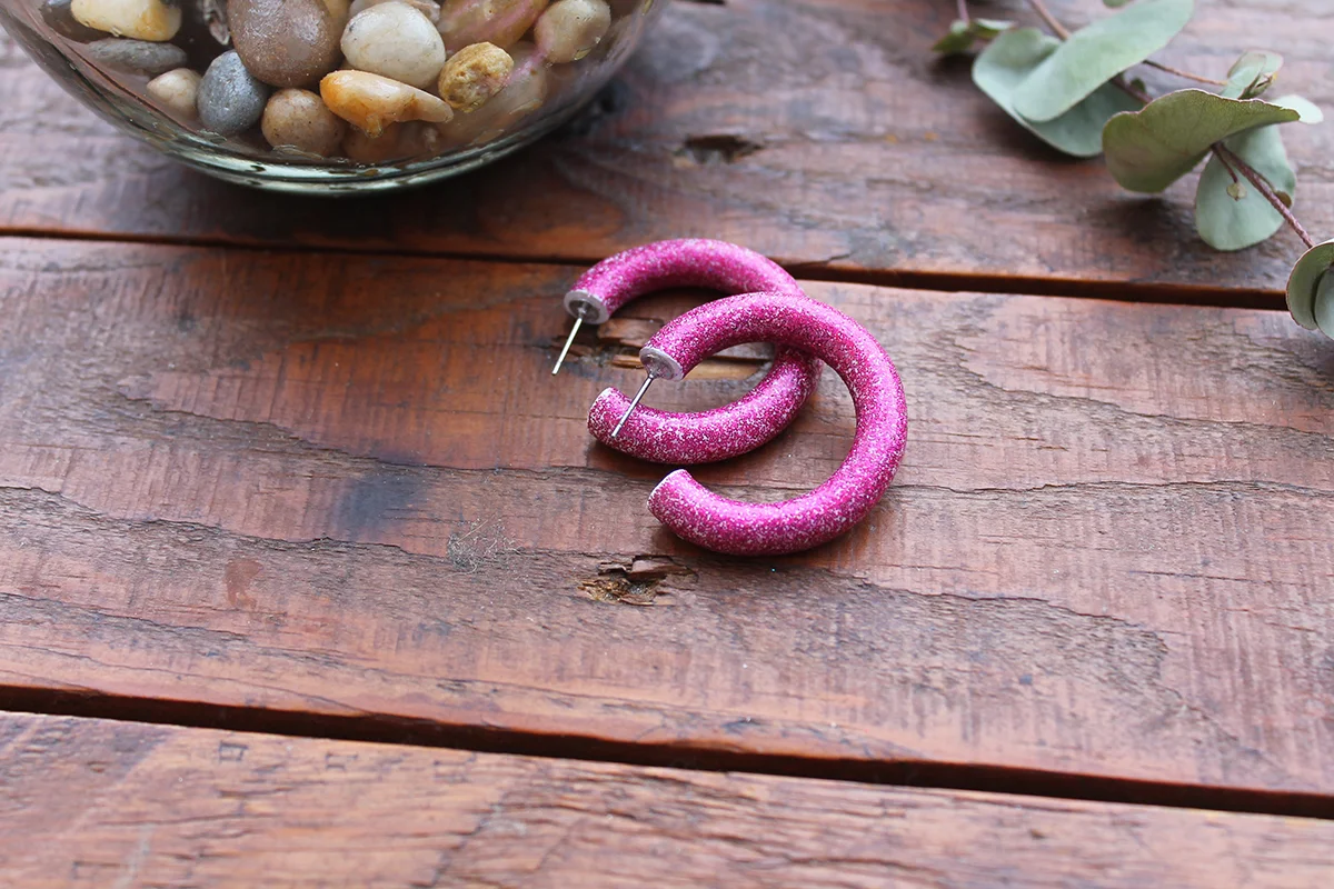 Disponibles en diferentes colores, nuestros aros con glitter son cómodos y ligeros, lo que los hace ideales para llevarlos todo el día. Además, su diseño llamativo te hará destacar.