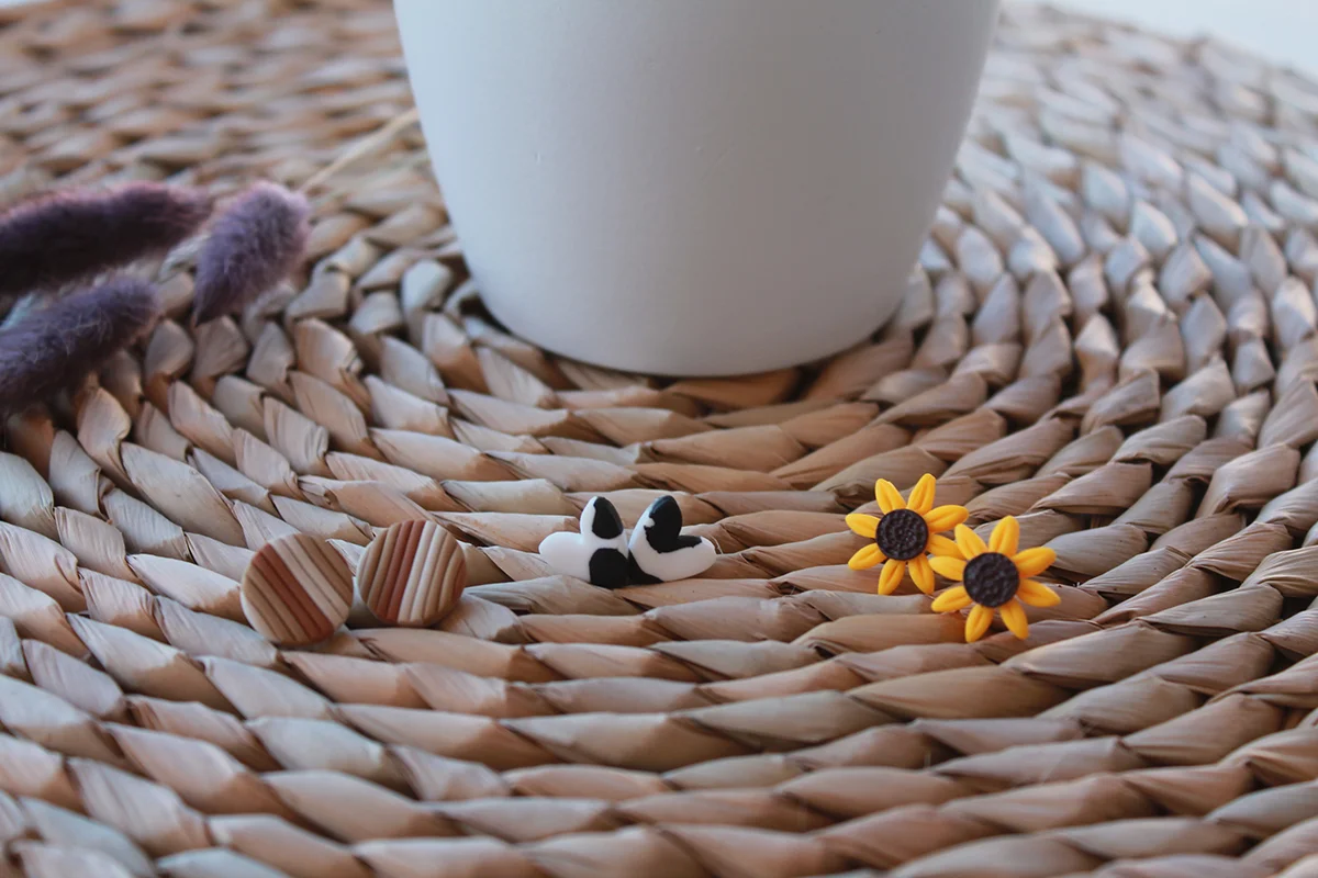 ¡Agrega un toque rústico y elegante a tu outfit con nuestro pack de pendientes Country Chic! Este magnífico pack incluye un corazón con estampado de vaca, un girasol y un círculo marrón, creando una combinación perfecta entre la belleza del campo y la elegancia de la moda.