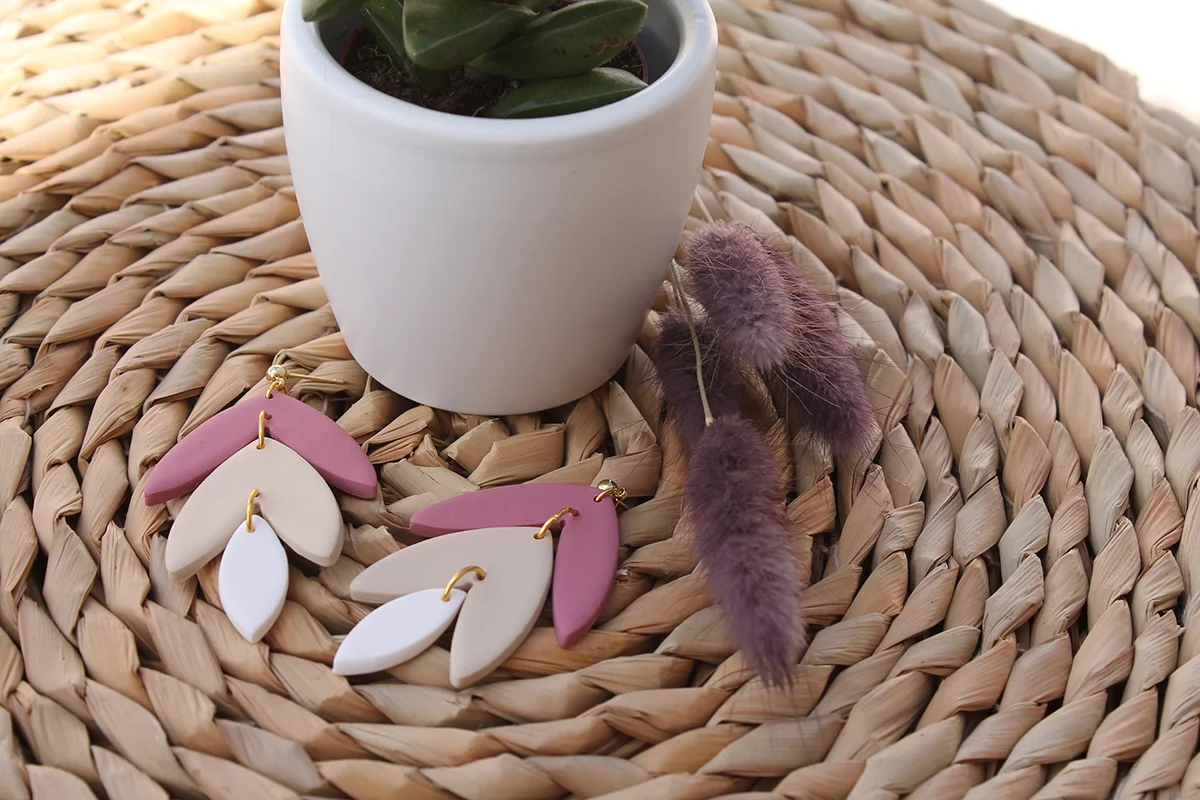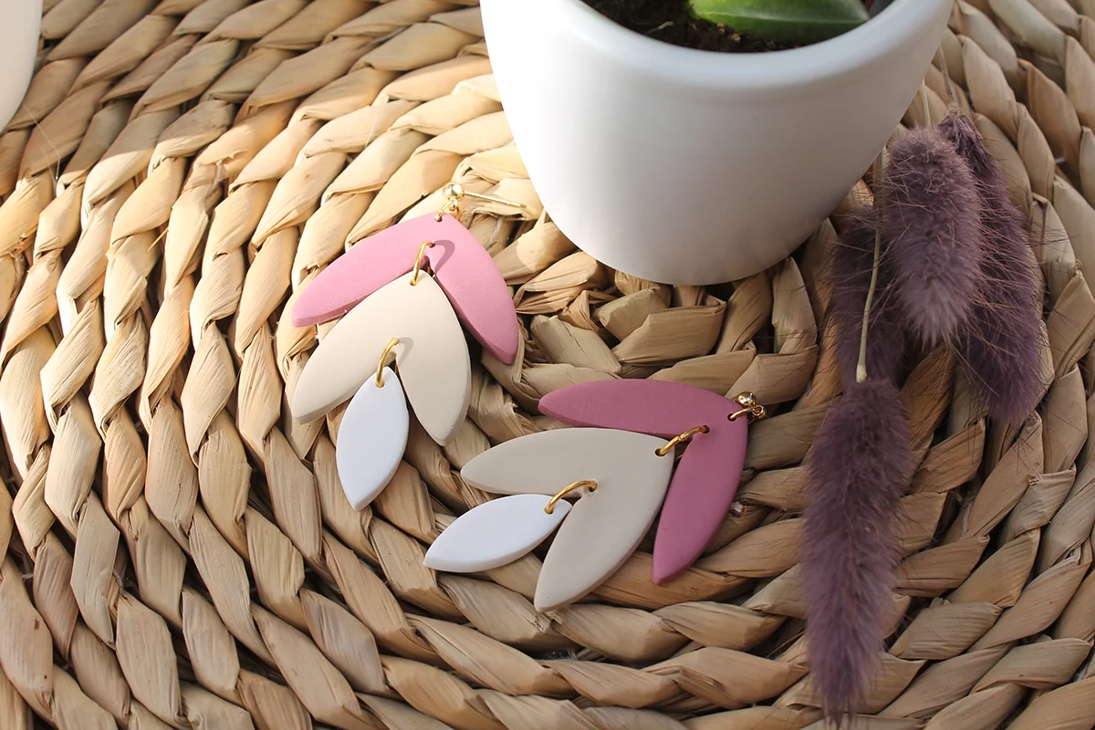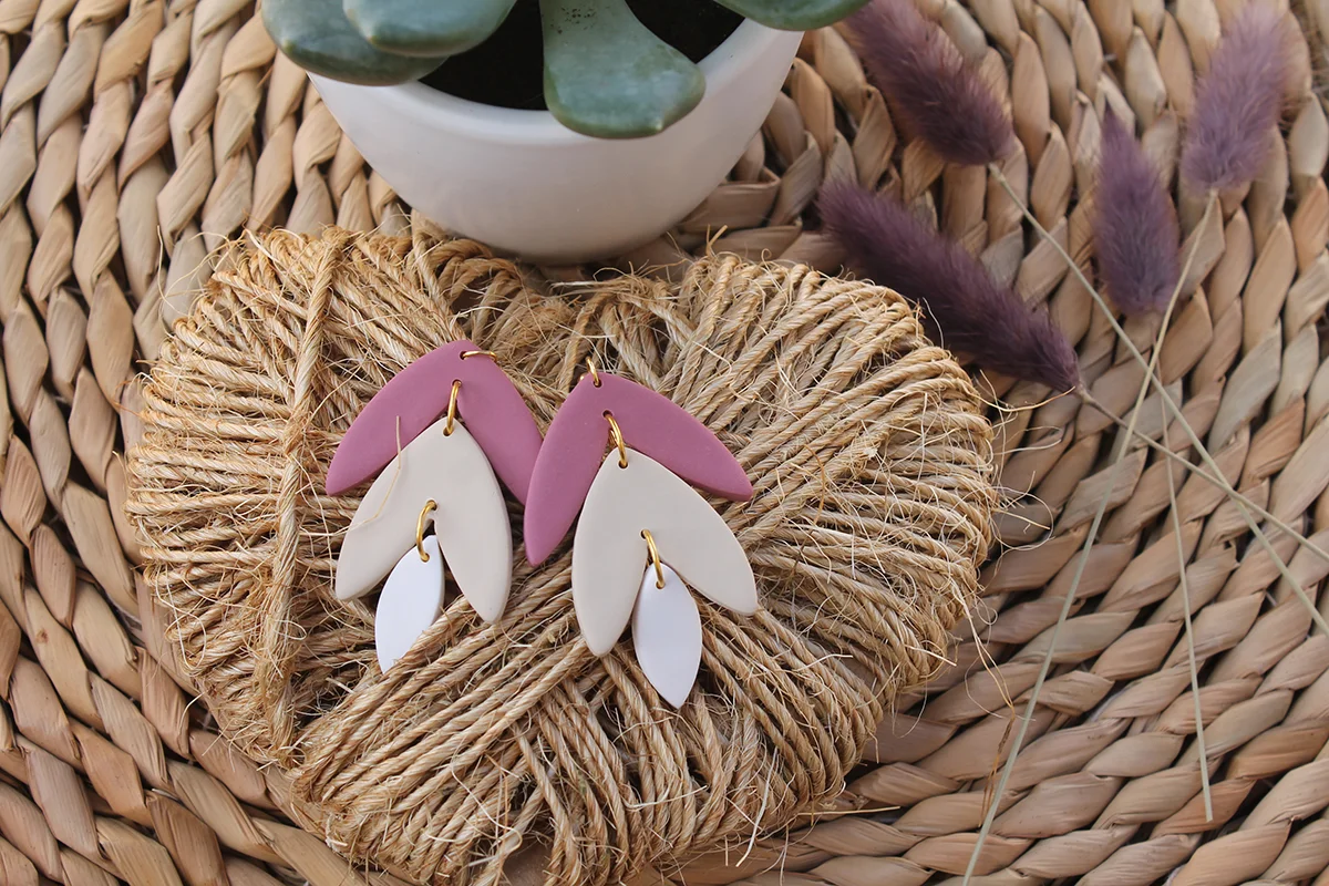 Esther: Cada par de pendientes está cuidadosamente diseñado con una forma delicada de hoja y tres colores diferentes que se mezclan armoniosamente, creando un aspecto único y encantador.