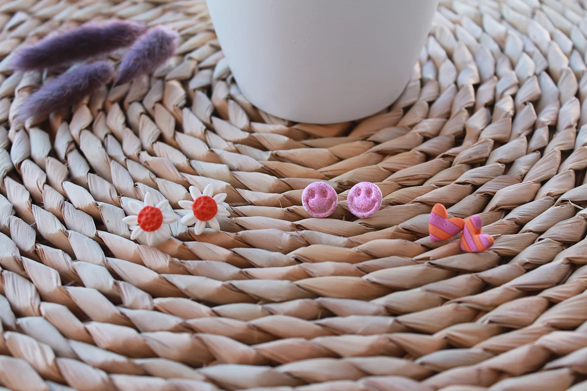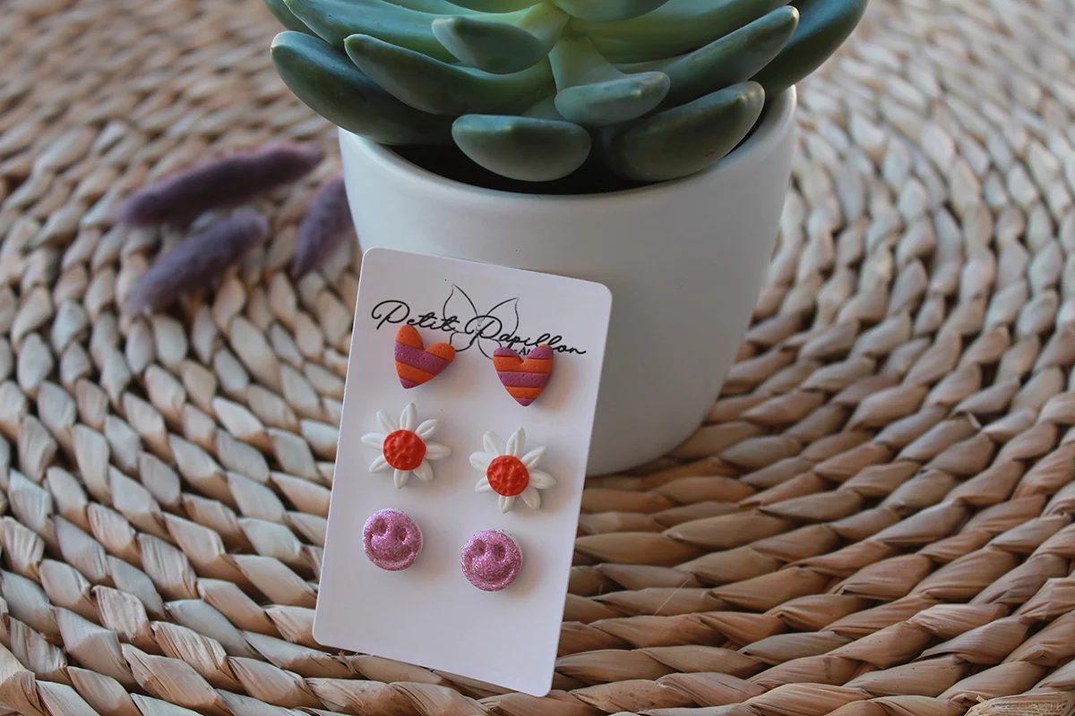¡Agrega un toque de alegría y diversión a tu outfit con este pack de pendientes Happy flowers ! Este encantador pack incluye un corazón de color naranja y violeta, una hermosa margarita y una carita feliz con glitter rosa. Cada pendiente está diseñado para hacerte sonreír y traer un poco de felicidad a tu día.
