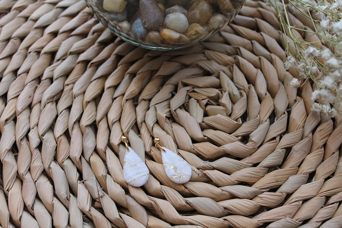 Karencita: Cada pendiente está diseñado para destacar con su elegante acabado de efecto cuarzo y toques de pan de oro, que se combinan a la perfección para crear un look único y llamativo. Además, el acabado brillante de cada pendiente los hace ideales para complementar cualquier atuendo.