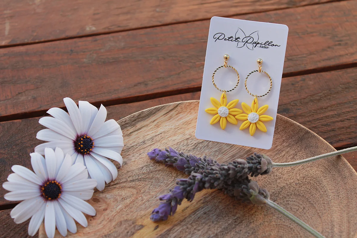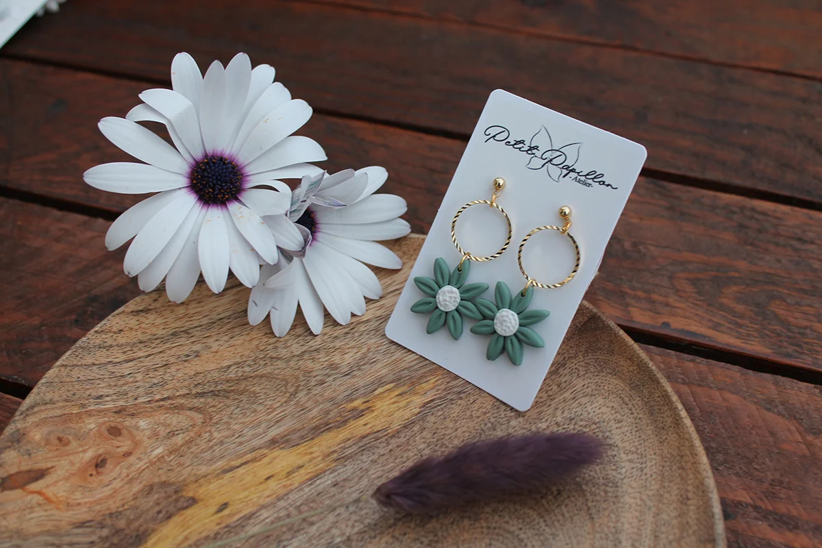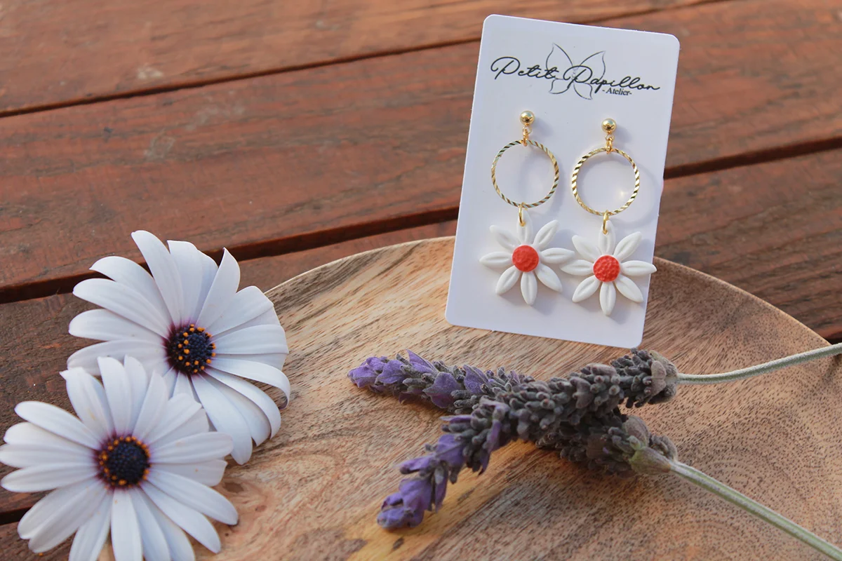Lara: Las margaritas, símbolo de inocencia y pureza, son el centro de atención de estos pendientes, mientras que el aro dorado agrega un toque de elegancia , creando un efecto visual atractivo. Estos pendientes están disponibles en varios colores, lo que significa que puedes elegir el que mejor se adapte a tu estilo personal. Ya sea que prefieras un tono pastel suave o un color vibrante y llamativo, hay una opción para cada gusto.