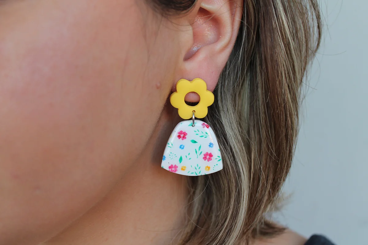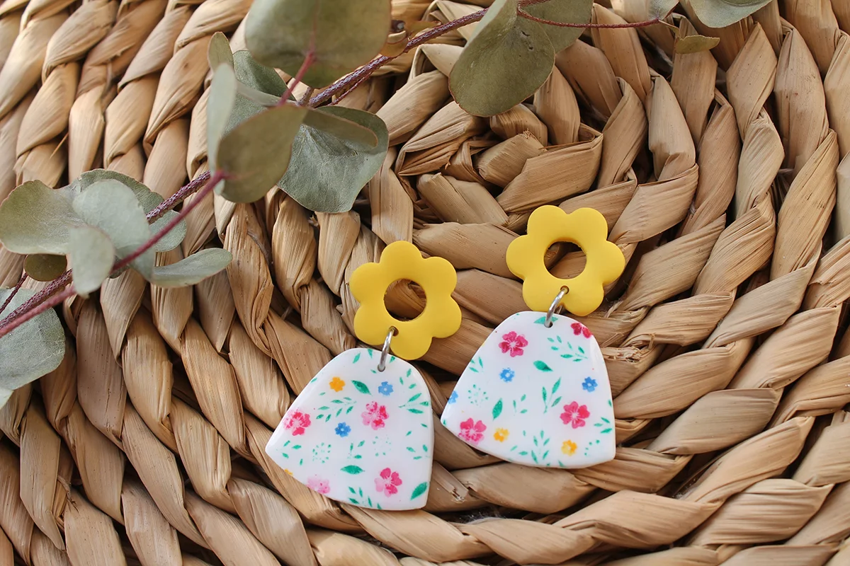 Estos deslumbrantes pendientes Nuria capturan la belleza de la naturaleza con un encanto excepcional. Presentan una elegante combinación de una flor delicada y una estampado de flores y hojas pintadas, creando un efecto deslumbrante y artístico.