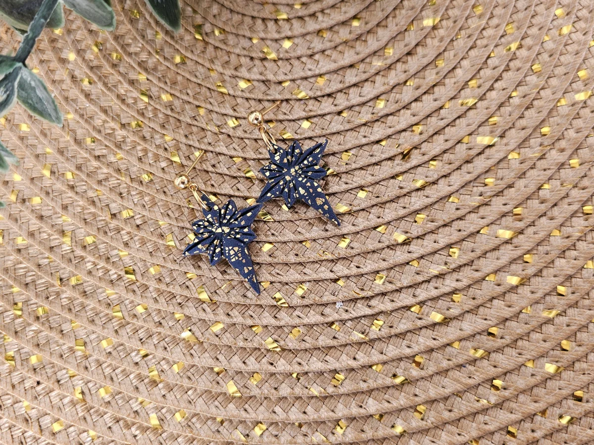 Haz que tu estilo sea una declaración de autenticidad. Con los pendientes Juliet de arcilla polimérica, ilumina tu look con la combinación encantadora de oro y azul, ¡porque tu estilo debe brillar tanto como las estrellas en el firmamento!