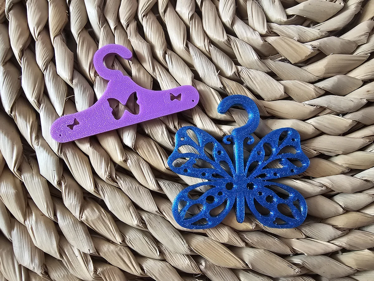 El perchero consta de seis perchas diseñadas especialmente para acomodar tus pendientes de manera ordenada. Puedes personalizar tu perchero eligiendo entre dos opciones de perchas. La primera opción presenta maripositas delicadas en cada percha, lo que añade un toque sutil de encanto a tu colección de joyas. La segunda opción es una percha más grande, moldeada con la forma elegante de una mariposa completa, lo que le brinda un toque de sofisticación a tu rincón de pendientes.